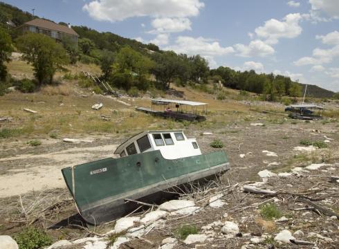The upper end of Cypress Creek Arm, at Anderson Mill Marina on Lake Travis, is a boat-and-float-filled pasture.