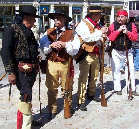 I never heard the fastest horseman idea. Juan Seguin (the reenactor on the left portrays him) was sent out as a messenger, so were a number of Anglos. Seguin came back after San Jacinto and collected the ashes and bones of the defenders and had them buried with honors. He had his own problems later, some blamed on the haters of all Mexicans, whether living south or north of the border, but some were of his own doing.