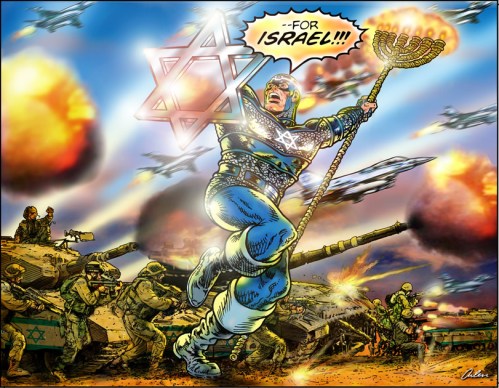 Just can’t get enough of this guy. I suppose the menorah’s a sort of fusion-cannon? And the shield, of course, stops bullets, shells and missiles? Just so.
