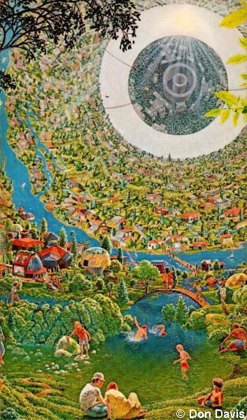 Had a bumper sticker by that title, years ago. Back in the 80s, I believe it was, when talk of O’Neil’s orbiting colony at L-5 (left) was rather more popular than now.