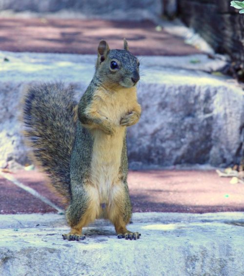 Actually, I’ve got them spooked. When I see them dangling from the bird feeders, trying to avoid the work of cracking their own nuts, all I have to do is unlock the sliding glass door to the patio. They drop and run. Heh.