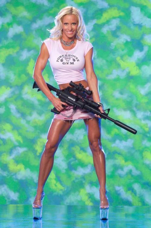 President Pinocchio allegedly wants to ban these semiautomatic AR-15s. I think the illegal silencer is a movie prop as Ms Lawrence has appeared in horror flicks. (Although it seems [see comments] silencers are legal in Texas, in case you want to murder without making any noise.)
