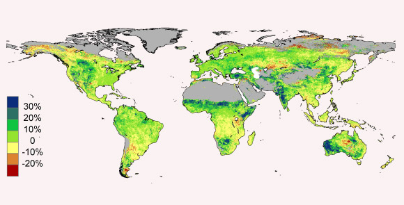 “According to [2013] research reported in the Geophysical Research Letters, increased levels of carbon dioxide (CO2) over the past three decades have caused an 11 percent increase in green foliage over the globe’s arid regions through a process called CO2 fertilization.”
