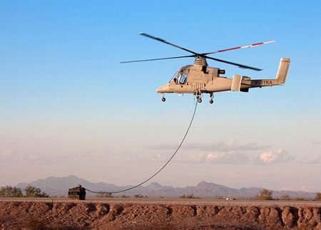 This K-Max robot helicopter, which has no human crew, is doing resupply for Marines in Afghanistan. Up to 4,500 pounds worth. Yes, but will it do Medevac?