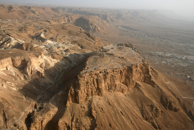 Just one of the places we’ll be visiting in Israel, though by far my favorite. We’ll be riding the cable car to the top of the 2,000-year-old Jewish fortress and winter palace of King Herod in southeastern Judea. But I may walk down the “snake path,” the white line on the lower right. Takes an hour or so. As for the history, some is at the link above. Much more is in this very fine book.